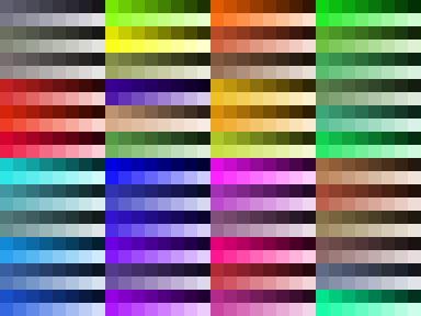 However, after working with the palette for a while and especially after doing some of the work for my current endeavor, the very limited selection of tones really started to become a problem. Since I was no longer working within a 256 color limit, I decided to expand this palette into this: